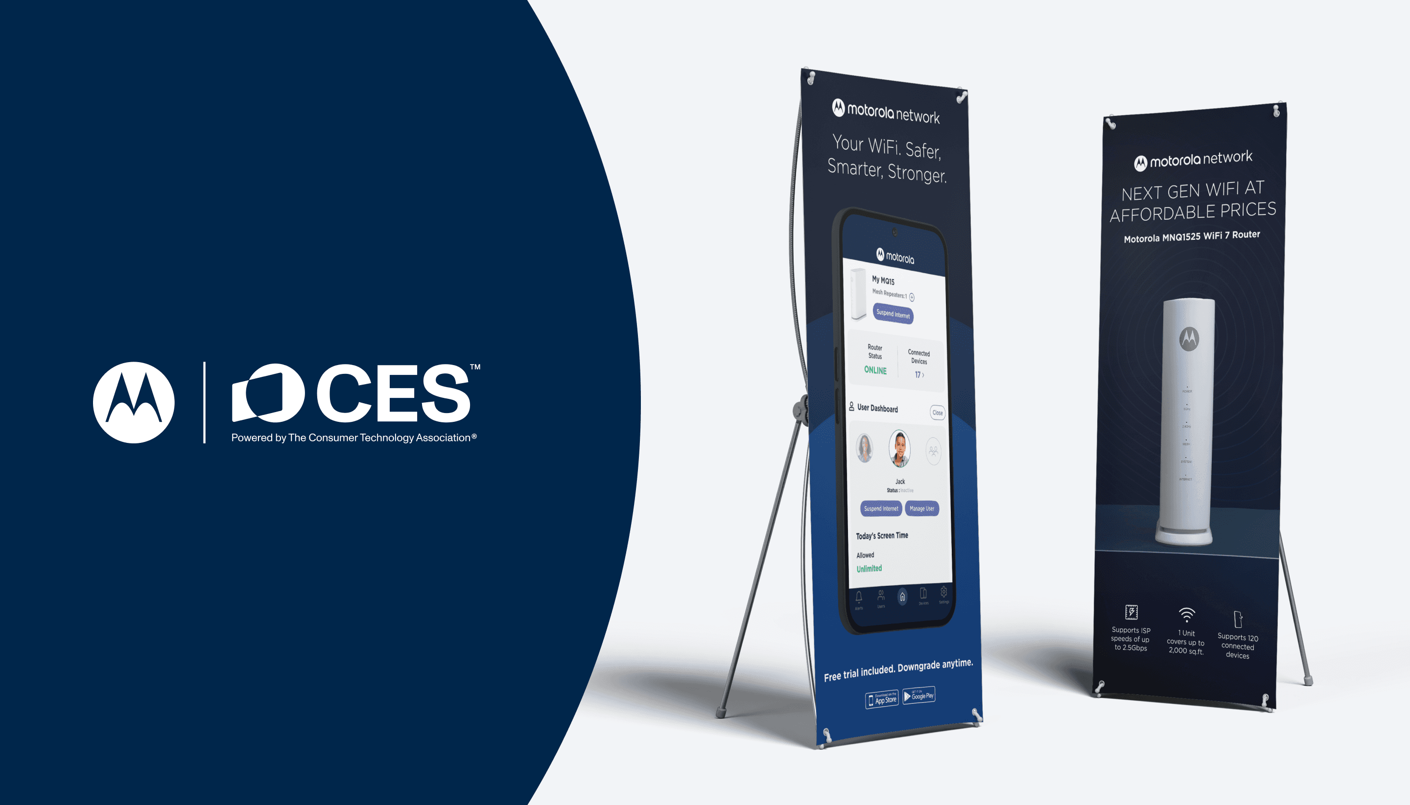 I designed a suite of branded physical and environmental assets to support Motorola Network’s presence on the show floor and elevate brand visibility in a highly competitive, fast-paced environment. The creative focused on bold, high-impact visuals that could cut through the noise of CES while reinforcing Motorola Network’s innovation-forward positioning.